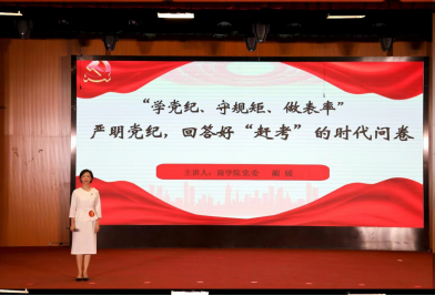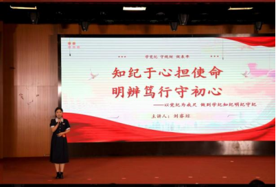 教工组比赛中,蔺媛以《严明党纪,回答好“赶考”的时代问卷》为题,以声情并茂的讲授,系统阐述了党的百年“赶考”历程中,中国共产党人始终不变的过硬作风和守纪为民的初心使命。员工组比赛中,刘睿琼以《知纪于心担使命,明辨笃行守初心》为题,从中国共产党在不同时期的纪律规定,倡导新时代青年要始终学思践悟,自觉做到学纪、知纪、明纪、守纪。