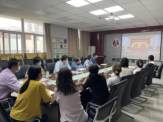 会议集体收看了北京冬奥会冬残奥会总结表彰大会的新闻视频,深入学习习近平总书记在大会上的重要讲话精神。习近平总书记系统阐明“胸怀大局、自信开放、迎难而上、追求卓越、共创未来”的北京冬奥精神,为我们奋进新征程、建功新时代注入强大精神力量。