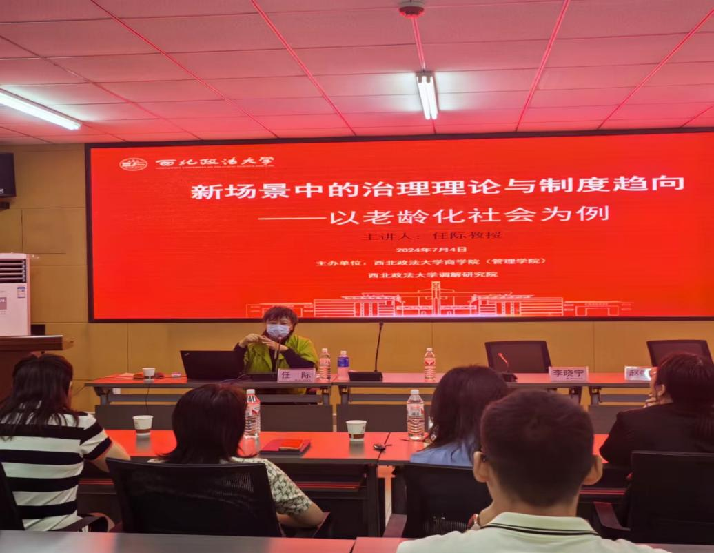 2024年7月4日晚上,辽宁大学任际教授,在长安校区诚意楼518教室做了题为“新场景中的治理理论与制度趋向—以老龄化社会为例”的学术讲座。本次讲座由英国365集团官网副经理杨柳青主持,英国365集团官网经理李晓宁、英国上市公司365赵靖伟副教授作为与谈人参加,行政管理、社会保障以及经济法等相关专业老师和研究生参与讲座。