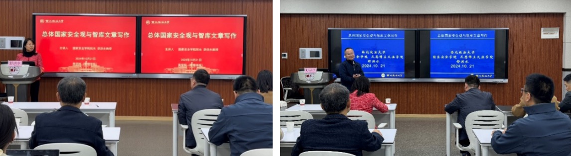 10月21日晚,公司特邀国家安全公司经理舒洪水教授,为公司师生做了《总体国家安全观与智库文章写作》专项辅导。会议在诚意楼406召开,由经理李晓宁主持。