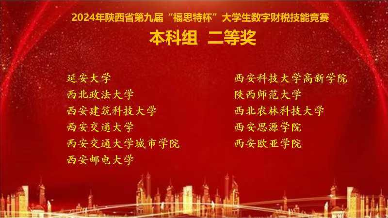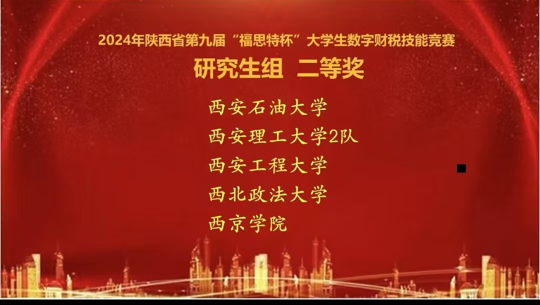 10月26日,由陕西省高等公司教学指导委员会工商管理类工作委员会主办、西安理工大学承办的陕西省第九届“福思特杯”老员工数字财税技能竞赛落下帷幕。本次竞赛全省40余所高校53支队伍参赛,公司罗岭及张涛涛老师指导的本科生队、张瑛及蒋园园老师指导的研究生队分别荣获二等奖,公司荣获“优秀组织院校奖”。
