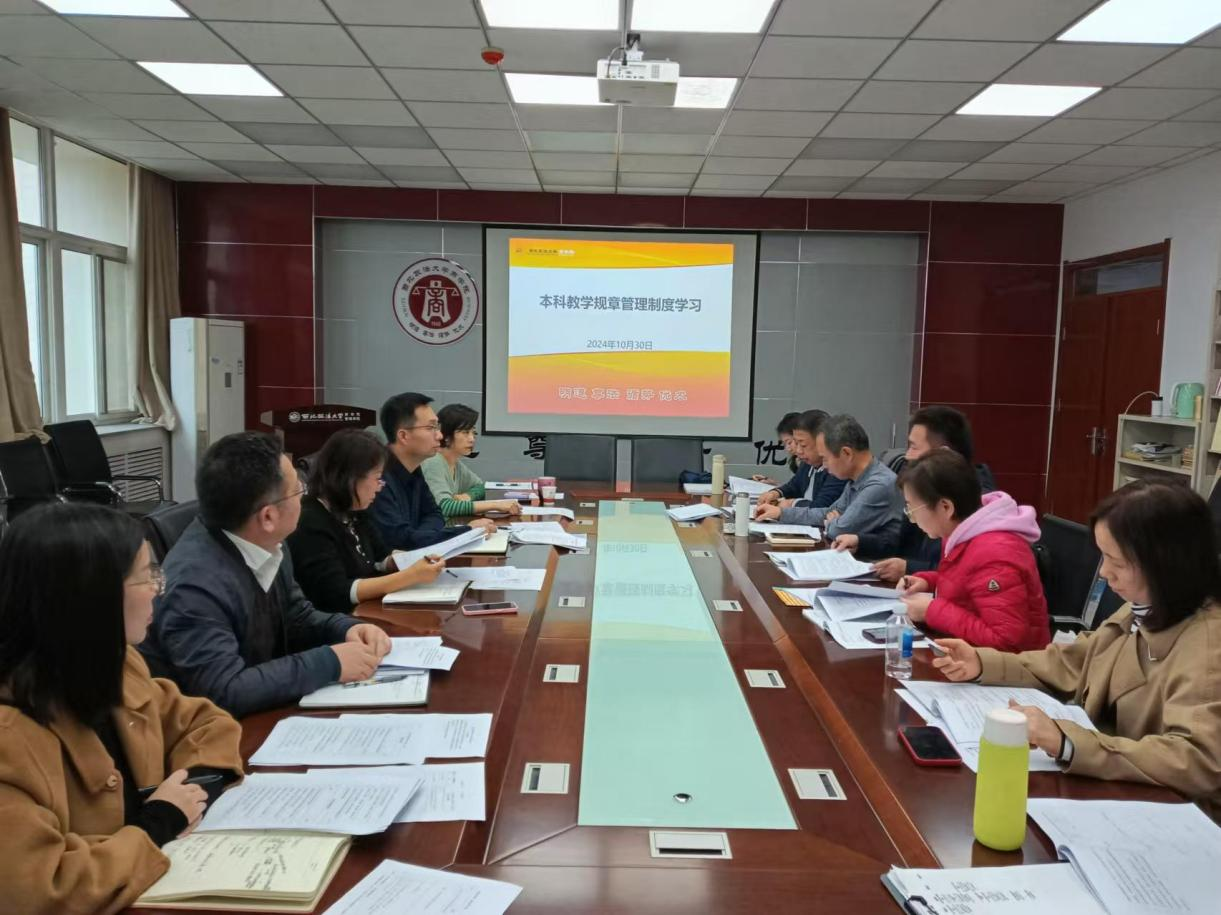 为进一步加强本科教学管理,公司于10月29日下午在公司资料室召开本科教学规章管理制度专题学习会议。公司领导班子成员,教师各党支部书记及系部主任参加会议,会议由教学副经理冯颖主持。