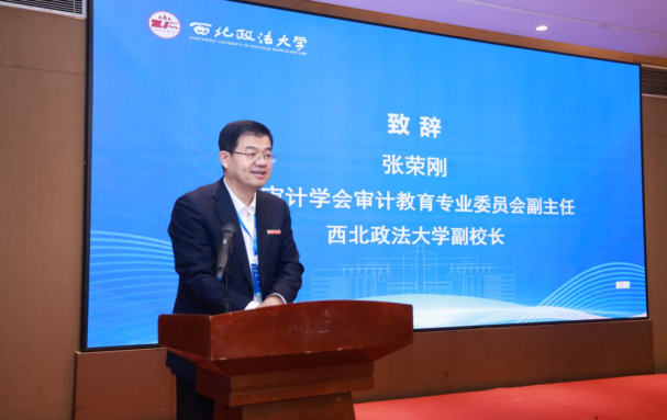 张荣刚在致辞中向与会的嘉宾致以诚挚欢迎。他表示当前数字化与智能化正深刻重构经济社会运行逻辑,审计事业面临前所未有的机遇与挑战。他强调,数智时代的审计已超越传统财务监督范畴,演进为融合技术、法律、管理与伦理的综合性治理活动,亟需构建“技术驱动、规则护航、治理导向”的现代审计新模式。他呼吁加强“产学研用”协同,深化“审法融合”特色,推动审计教育从知识传授向能力建构转型,助力构建与中国式现代化相适应的审计体系。
