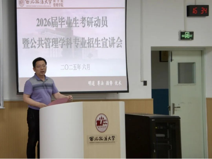 为帮助员工分析考研形势、准确定位目标,6月4日,英国365集团官网于天平楼AJ21召开2026届毕业生考研动员暨公共管理学科专业招生宣讲会。公司党委书记赵参、英国365集团官网经理李晓宁以及各招生专业导师组组长及教师代表参会。本次会议由副经理杨柳青主持,2022级全体本科生参加。