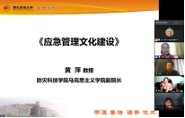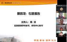 第二项,校外应急管理领域专家王淑江教授、戚艳华教授、黄萍教授及李海君教授分别做了对应急管理论述思考、应急管理文化建设和人才培养三个方面的主旨报告。