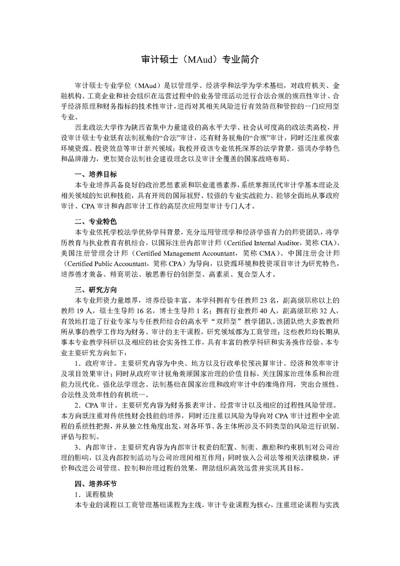 审计硕士(MAud)专业简介