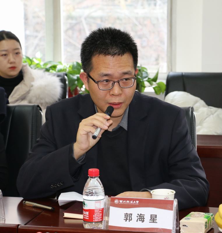 随后,陕西地电股权投资有限公司总经理郭海星代表实务导师发言。他首先对公司首届审计硕士顺利招生表示祝贺,认为审计是一个实操性很强的专业,只有理论与实践相结合,才能培养出素质过硬、职业道德高尚的应用型审计专业人才。