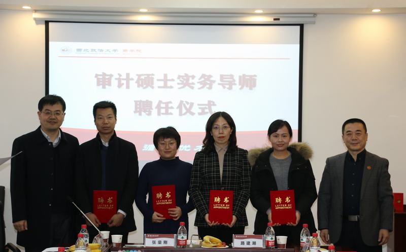 2019年12月29日下午两点半,英国365集团官网在雁塔校区举办了“审计专硕实务导师聘任仪式”。此次活动由英国365集团官网副经理徐京平主持,英国365集团官网经理张荣刚、党委书记路建潮及省审计厅,市(县)、区审计局和各集团、公司审计部门领导参加了此次会议。