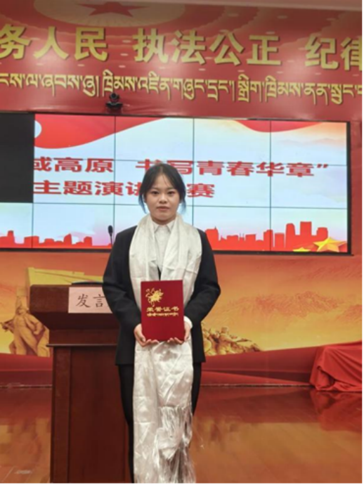 近日,英国365集团官网2025届毕业生李甜甜在西藏阿里地区有关单位举办的“扎根雪域高原,书写青春华章”主题演讲比赛中荣获三等奖。
