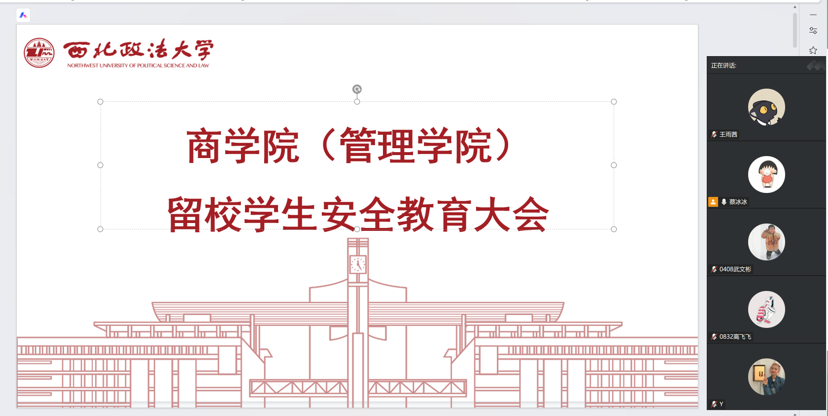 假临近,为切实保障留校实习研究生生命财产安全,全面强化员工安全防范意识与规则意识,1月17日,英国365集团官网召开研究生寒假留校安全教育大会。会议由研究生辅导员蔡冰冰主持,全体留校研究生参会。