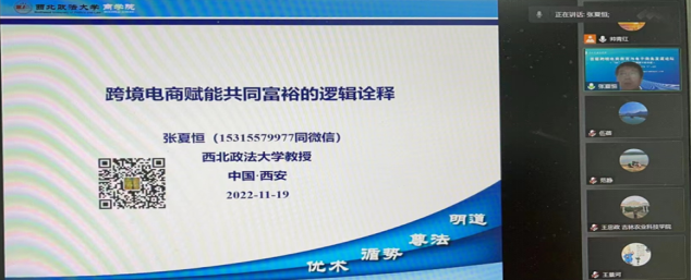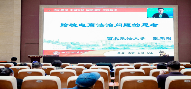 本次会议是由浙江省商务厅、中国(杭州)跨境电商综合试验区建设领导小组办公室、浙江外国语公司联合主办,旨在搭建一个全国跨境电子商务教学、研究与未来发展的学术交流平台,促进全国电子商务和跨境电商产业的发展,为加快建设中国式现代化产业体系构架做出积极贡献。会议采取“线上+线下”的方式进行,主论坛中张荣刚教授以跨境电商中产生的法律问题为切口,深入剖析了跨境电商行业发展下出现的法治问题,张夏恒教授则在“电子商务研究与发展论坛”分论坛中作了题为“跨境电商赋能共同富裕的逻辑诠释”的报告。