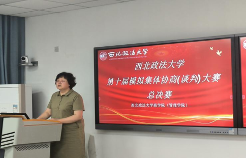 教务处副处长王若梅致开幕辞。她指出模拟集体协商(谈判)大赛是“以赛代教”、“以赛促学”培养方式的最好体现,为师生提供了相互切磋、相互学习、共同进步的机会,要将模拟集体谈判的点滴融入专业知识中,让专业水准变得越来越强。