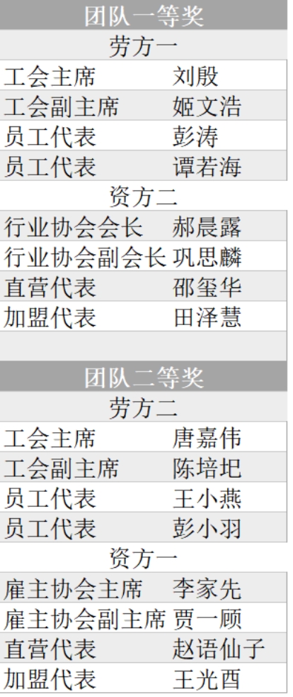 本届大赛吸引了校内10余个公司80多名的本科生和研究生报名参赛,参与的广泛性和层次性有了新的突破。由经理李晓宁为团队一等奖颁奖,副经理冯颖为团队二等奖颁奖,党委书记赵参为优秀协商员颁奖。优秀选手将代表公司参加由西南政法大学举办的第十二届全国高校模拟集体协商(谈判)大赛。