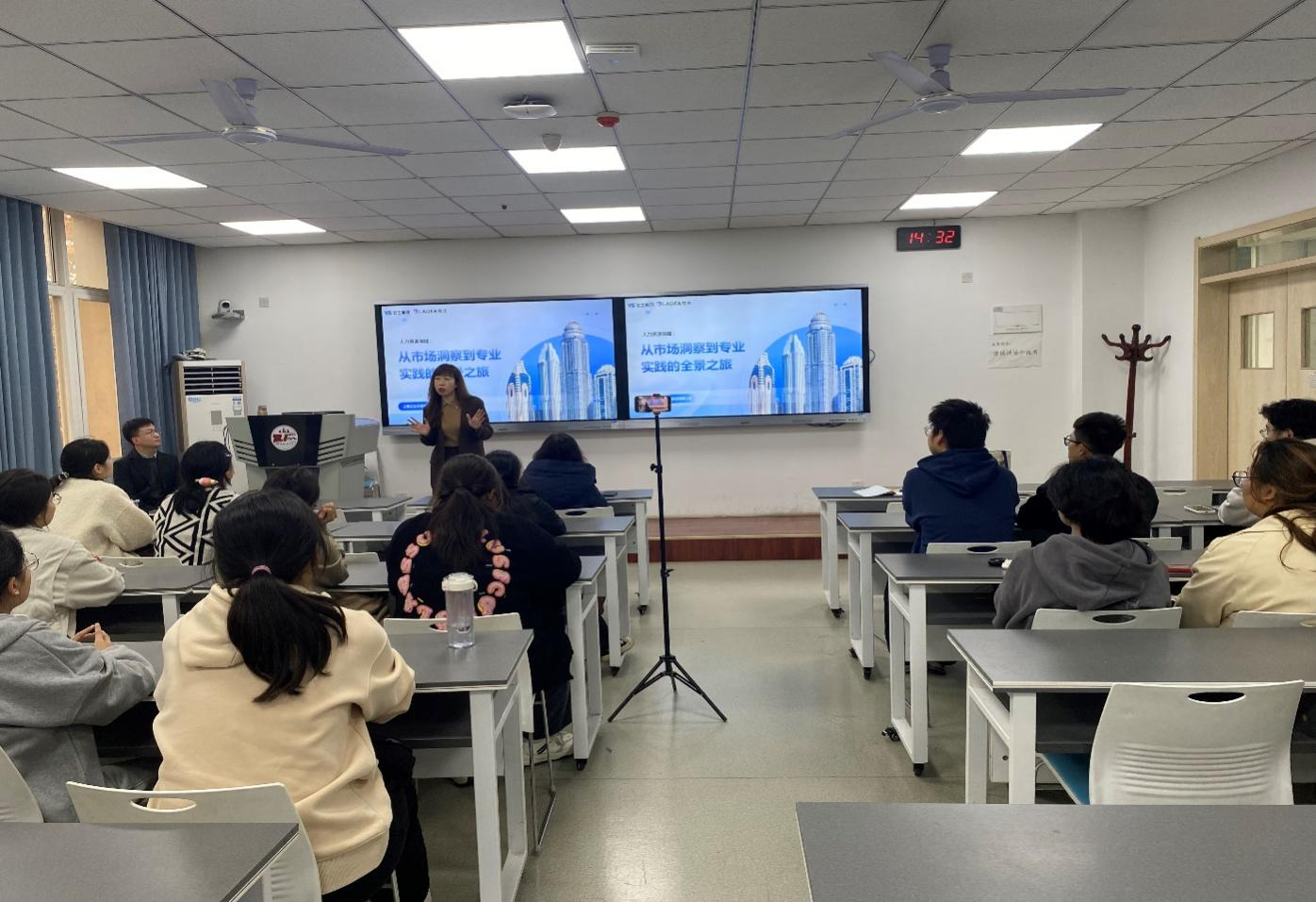 11月14日下午,公司邀请云生集团智服人力陕西有限公司首席咨询官、首席合规官、省级领军人才、省人社厅专家库成员龚霞老师于长安校区诚意楼为人力资源管理专业师生开展专业讲座,2024级全体人力资源管理员工参加,讲座由人力资源管理系主任黄雯教授主持。