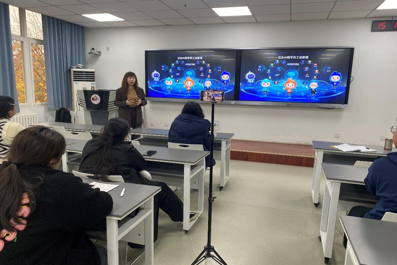 讲座题目为《从市场洞察到专业实践的全景之旅》,讲座分四部分内容。通过市场环境与背景、AI+人力资源的实践与应用、专业的咨询服务、云生集团介绍,让同学们对人力资源管理专业及发展前景有了深入的了解。讲座期间还让同学们尝试通过AI系统来解决企业管理中存在问题,同学们感受到人工智能在工作实践中的应用。讲座结束后,龚霞老师和员工们进行了积极的互动,热心解答了同学们在人力资源管理领域中提出的问题,鼓励同学们认真学习专业知识,多在实践中学习成长。