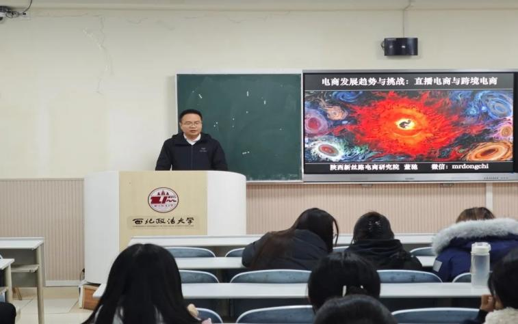 2024年11月25日晚,公司邀请陕西新丝路电子商务研究院经理董驰老师于长安校区为2024级电子商务及法律和跨境电子商务专业员工开展讲座。此次讲座由董驰老师主讲,电子商务及法律系主任王卫东教授、方丽娟老师出席。