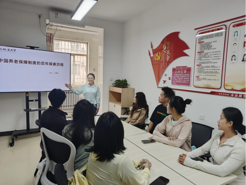 活动中,王晨曦介绍了养老保障是有关老年人的物质保障和服务保障,是社会保障制度体系中的核心内容和重要环节,并结合具体案例分别从不同时期的历史背景及其养老保障的特征来介绍我国养老保障制度的百年探索历程。随后,同学们围绕主题展开了交流讨论,有同学指出,随着人口老龄化的加剧,中国的养老保障制度面临着巨大的挑战。如何进一步完善制度,提高养老保障水平,是当前亟待解决的问题。