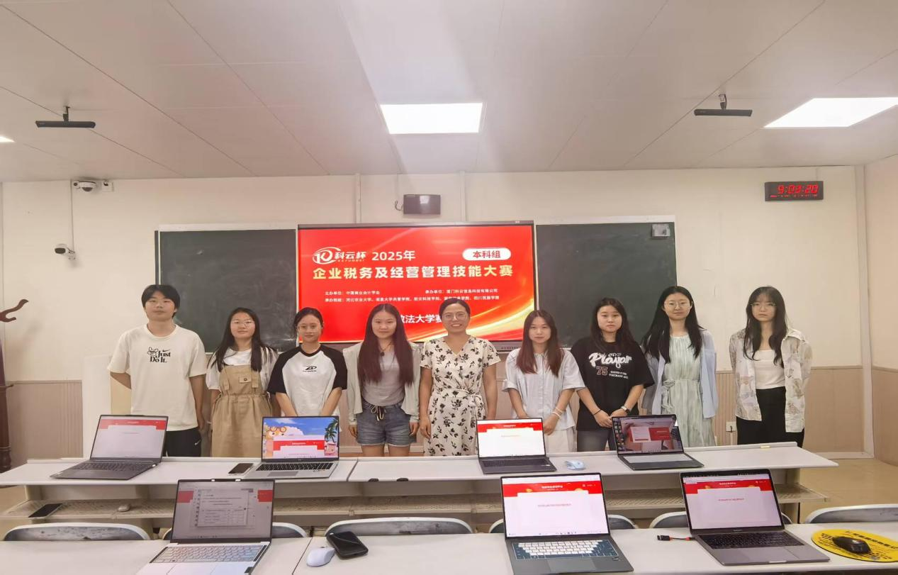 本次大赛吸引了全国多所高校587支精英队伍同台竞技,竞赛内容涵盖企业税务筹划、财务分析、经营决策模拟及税务风险防控等核心模块,全面考察参赛选手的财税实务能力和经营管理思维。在激烈的竞争中,由凤晗欣、闫一宁、邓如意、左婉茹以及李佳优、普鑫凤、杨颖、苗瑞芳组成的两支队伍在比赛中沉着应对、配合默契,灵活运用所学知识,最终脱颖而出,赢得佳绩。
