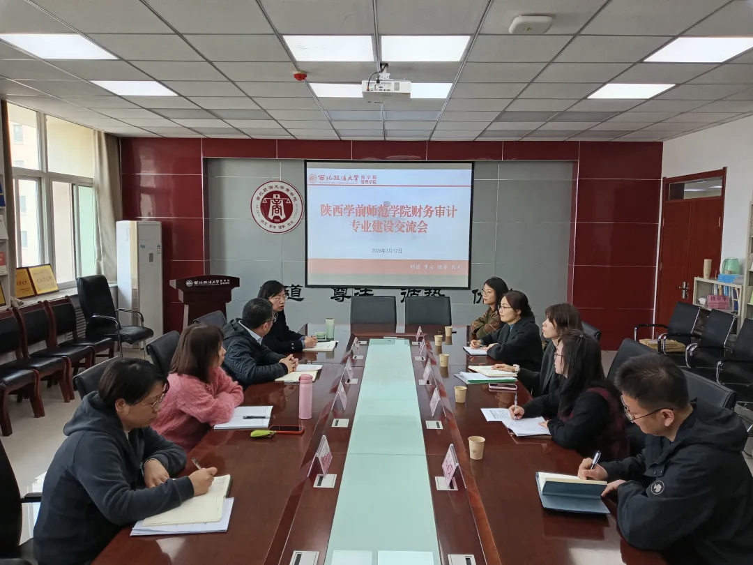 3月12日下午,陕西学前师范公司经济与管理公司副经理徐晗、会计系主任程莉娜、财务管理系主任任建华及骨干教师等一行5人来公司就财务审计专业建设调研交流,公司副经理杨柳青,财务审计系主任李普玲、副主任张瑛参会。双方围绕财务管理、审计学专业建设、人才培养方案制定修改、团队互访等议题进行了深入座谈。