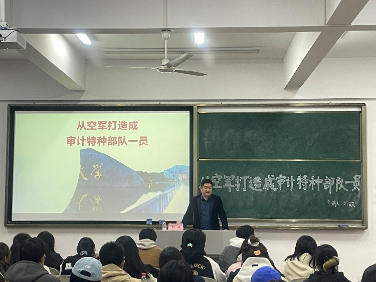 11月29日,我院教师刘政受南京审计大学金审公司的邀请,为该校师生带来了一场题为《从空军打造成审计特种部队一员》的专题报告和审计专业招生宣传。刘政博士不仅是一位资深的教育工作者,也是审计领域的实务专家,他的这次讲座吸引了众多师生的关注。