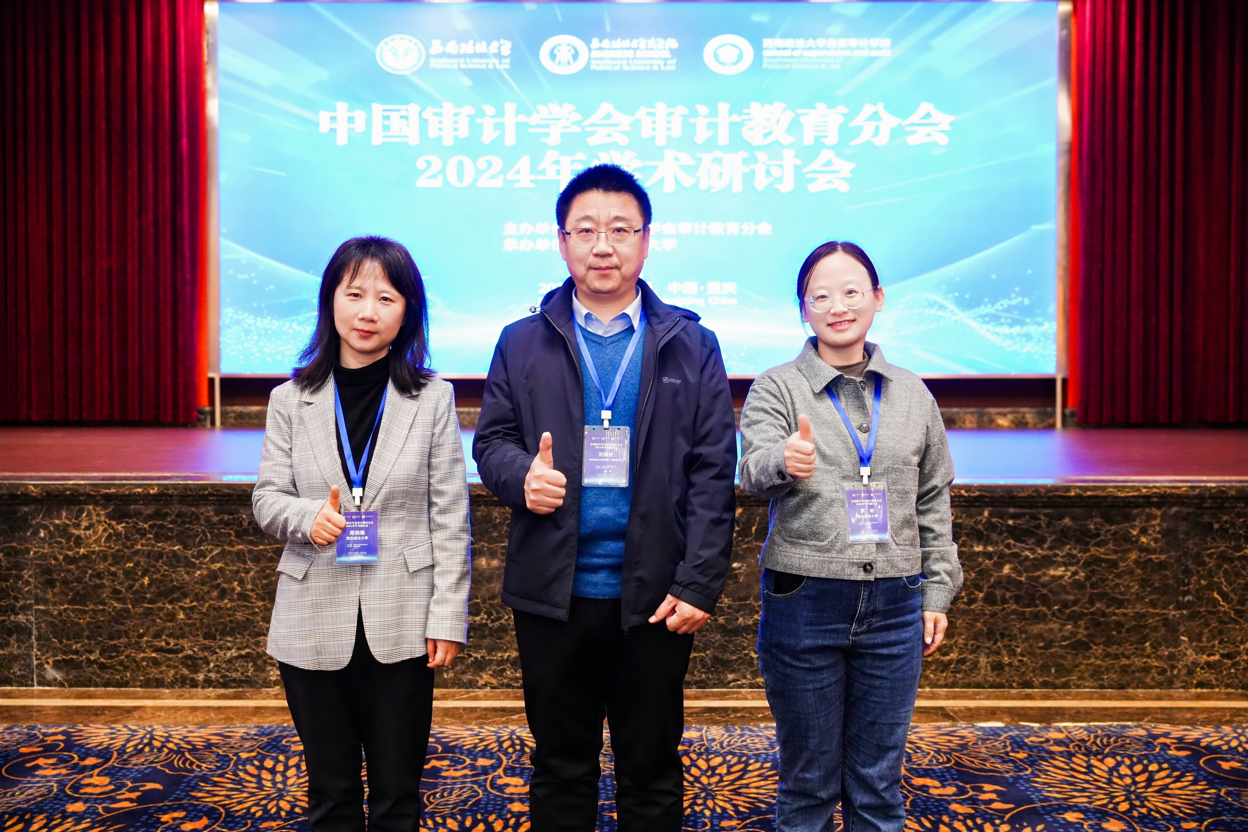 2024年11月30日,由中国审计学会审计教育分会主办、西南政法大学英国365集团官网(监察审计公司)承办的中国审计学会审计教育分会2024年学术研讨会在重庆召开。我院审计专硕导师席晓娟、刘维政和罗岭老师参加了此次会议。