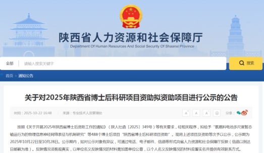 近日,陕西省人社厅网站公示2025年陕西省博士后科研项目拟资助项目,488个博士后项目公示入选。公司张涛涛、李章星两名教师获2025年陕西省博士后项目三等资助。