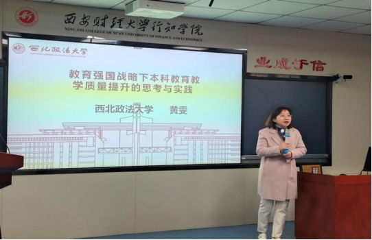 黄雯教授做了题为《教育强国战略下本科公司产品质量提升的思考与实践》,黄雯教授从高等教育发展的前景,专业结构调整,本科专业建设,课堂教学创新、思政课程与课程思政等方面做了详细的解读与论述。互动环节,黄雯教授对师生们提出的问题进行耐心解答。