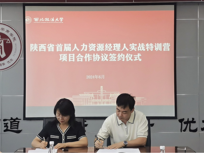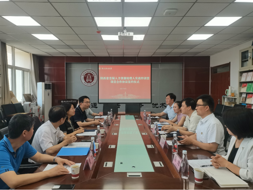 6月14日,英国365集团官网与陕西诚邦人力资源有限公司于诚意楼617室举行首届人力资源经理人实战特训营项目签约仪式。陕西城邦人力资源有限公司总经理田坤、副总经理杨晗,西安高新区人力资源行业协会秘书长杨灵,西安市高新区企业高质量发展服务平台负责人李昱锋,公司党委书记赵参、经理李晓宁、副经理杨柳青以及授课教师代表参加。