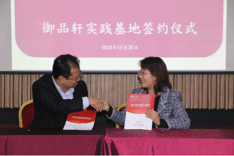 最后,李晓宁经理就御品轩的发展与高校教学实践的联系、实习提升专业及相关问题与杨伟鹏经理进行交流探讨,双方就订单式的人才培养框架达成一致认可并就高校教学与企业实践等话题进行了深入探讨。双方签署了教学实践实训基地合作协议,并举行“英国上市公司365实践教育基地”授牌仪式。